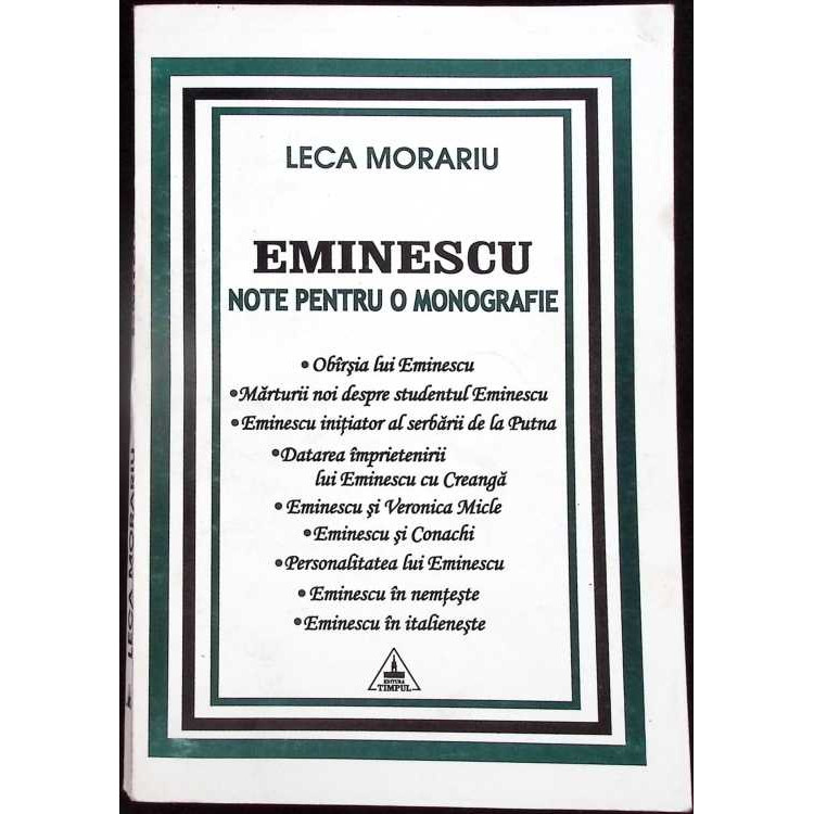 EMINESCU, NOTE PENTRU O MONOGRAFIE - LECA MORARIU face parte din oferta anticariatului nostru, cu livrare imediata din stoc.