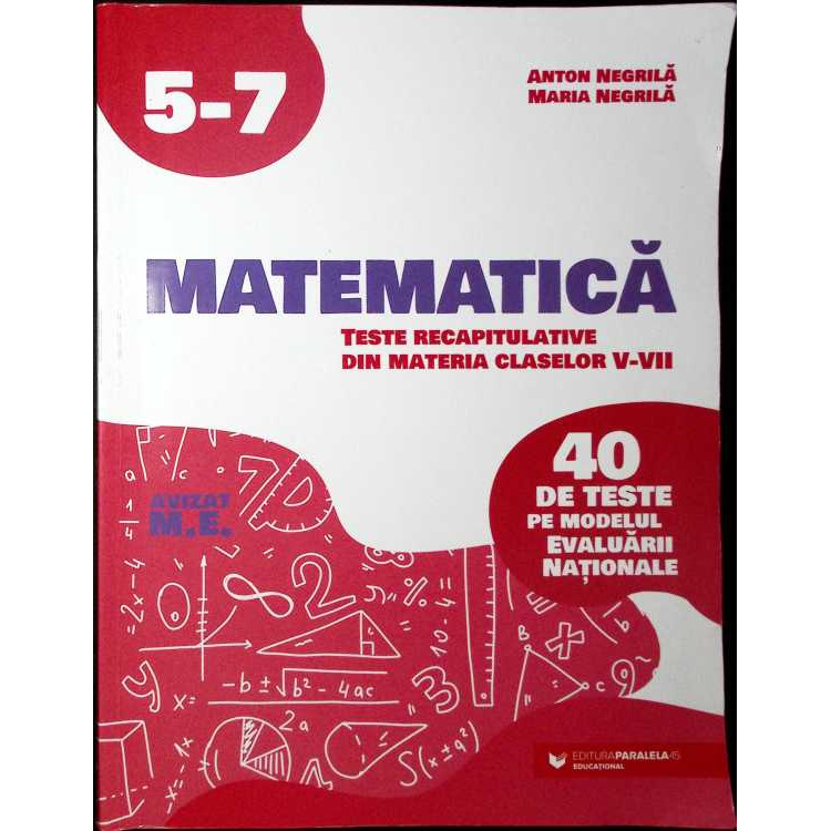 Etichete: MATEMATICA, TESTE RECAPITULATIVE DIN MATERIA CLASELOR V-VIII, ANTON NEGRILA, MARIA NEGRILA