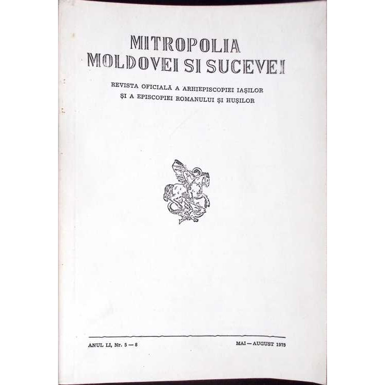 Cartea "MITROPOLIA MOLDOVEI SI SUCEVEI. REVISTA OFICIALA A ARHIEPISCOPIEI IASILOR SI A EPISCOPIEI ROMANULUI SI HUSILOR, ANUL LI, NR.5-8 MAI-AUGUST 1975" scrisa de COLECTIV
